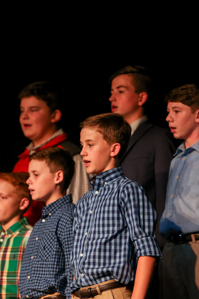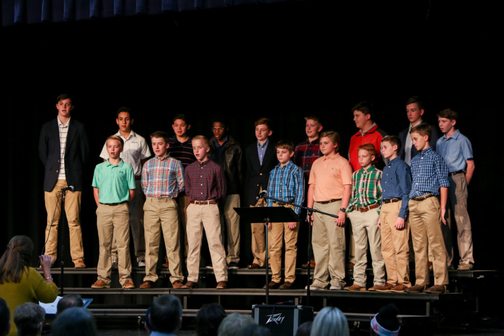 Next, the 7th and 8th grade boys sang the three selections that were the audition pieces for the TMEA all-region choir contest. Sam St. Amant, a 7th grader, was chosen back in October for the all-region choir, along with 8th grader, Ashley Nguyen.