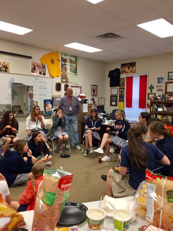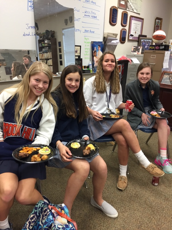After a successful weekend for the middle school one act play and musical, the 7th and 8th grade choir and drama students celebrated during one of their class times. While enjoying their snacks, the students discussed their feeling about how they did and what the experience was like. For several, it was their first time to perform in a musical or play. The students decided that that overall the experience was a positive one and something they would like to do again.