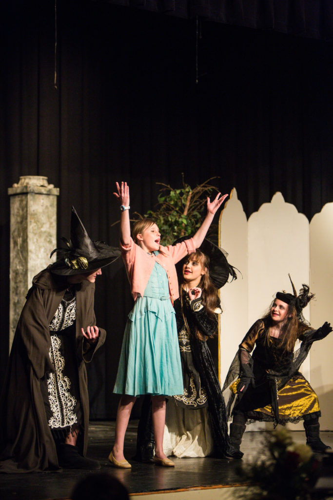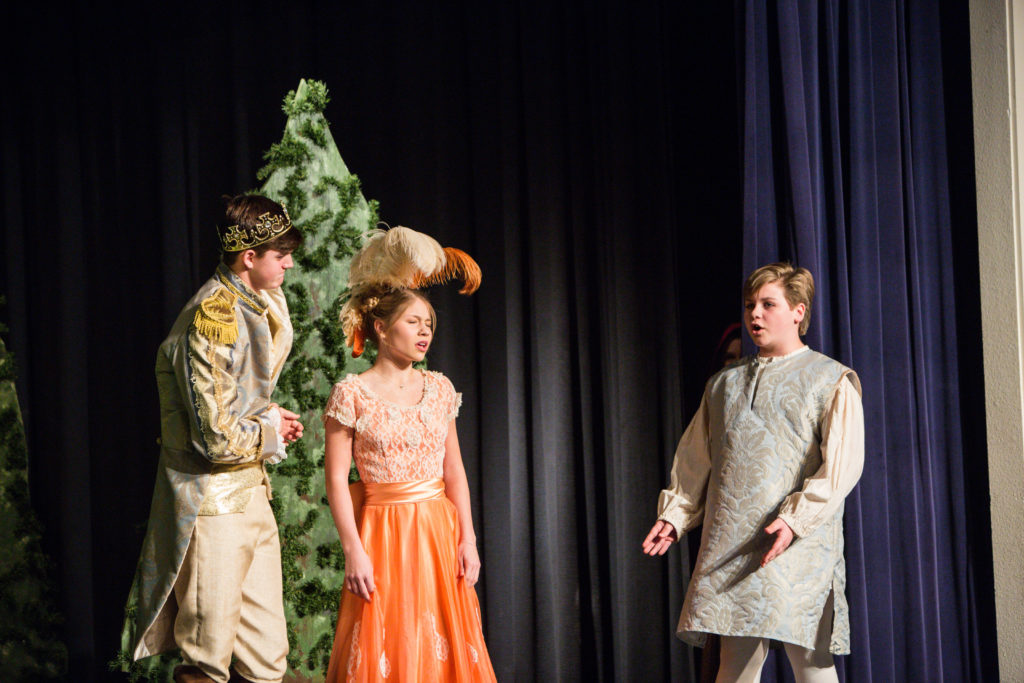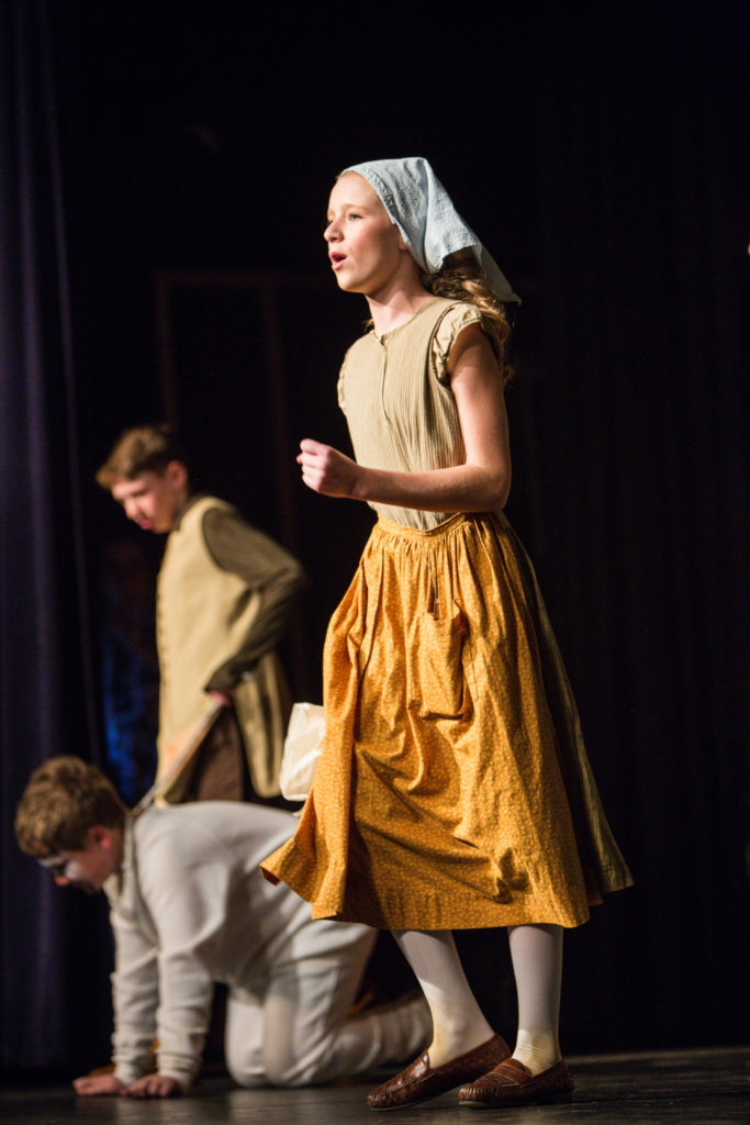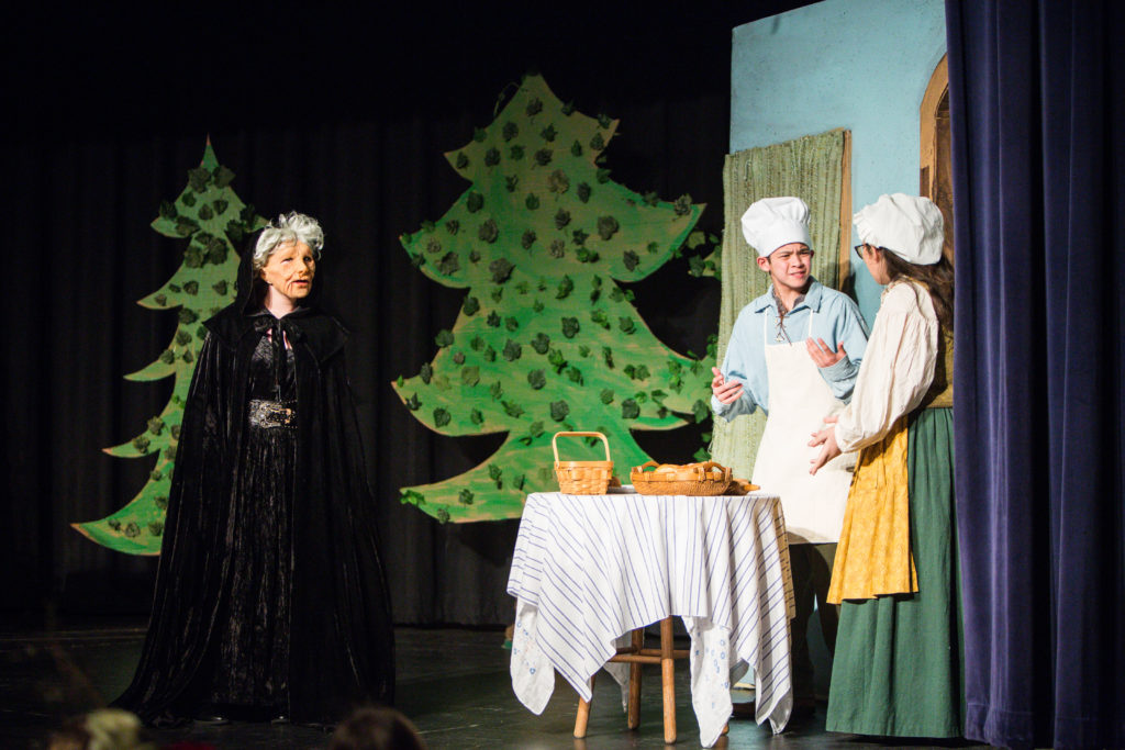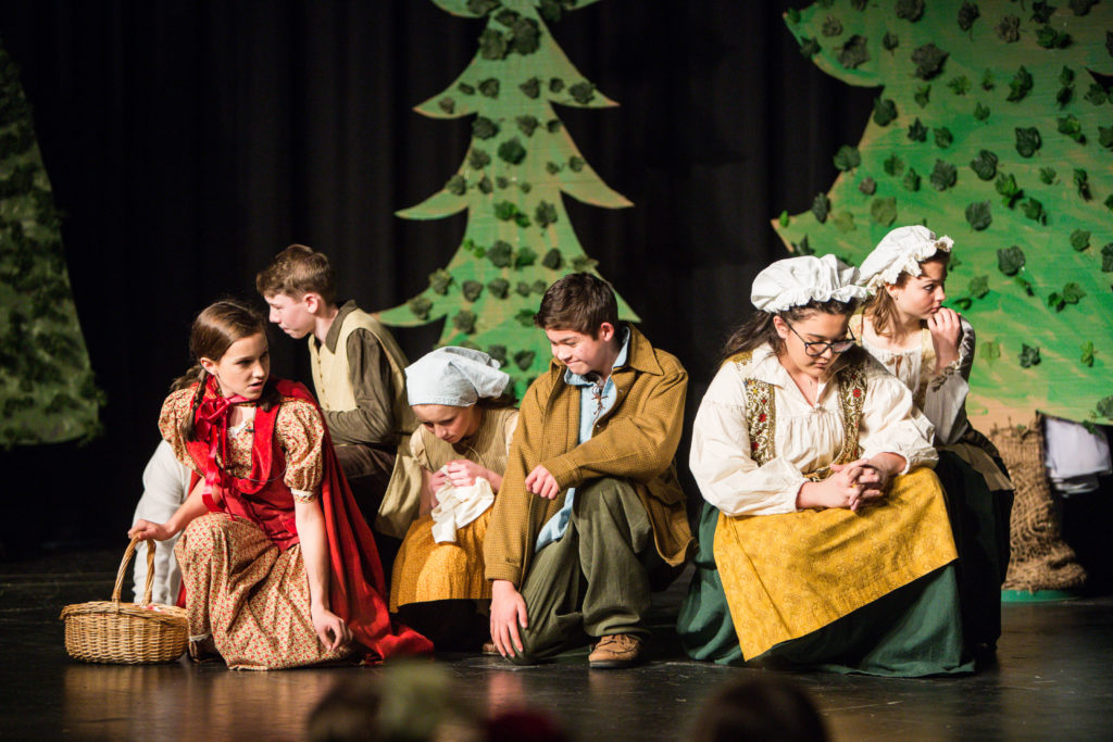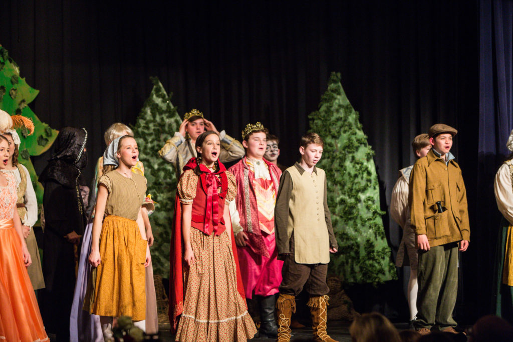 The Middle School Choirs enjoyed great success with their recent Middle School musical, Into the Woods, Jr. The story is based on a number of fairy tales, including Little Red Riding Hood, Cinderella, Jack and the Bean Stalk, and Rapunzel. Each of the characters cross paths in the woods in search of something they wish for. In the end, of course, they all live happily ever after. The students were responsible for not only acting and singing, but also for set moving and even lights. It’s a great opportunity for the middle schoolers to get a taste of what it is like to produce a musical, and is a great stepping stone for those who might like to be in the full scale musical put on by the fine arts department each year.
