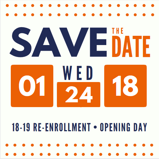 Mark your calendars! Re-enrollment for the 2018-2019 school year opens Wednesday, January 24, 2018.