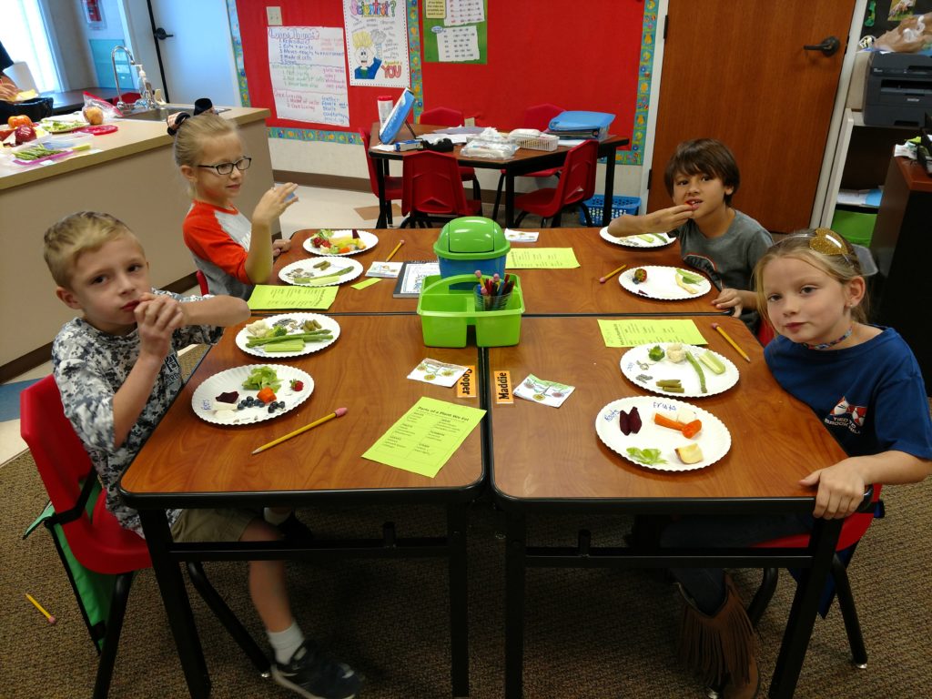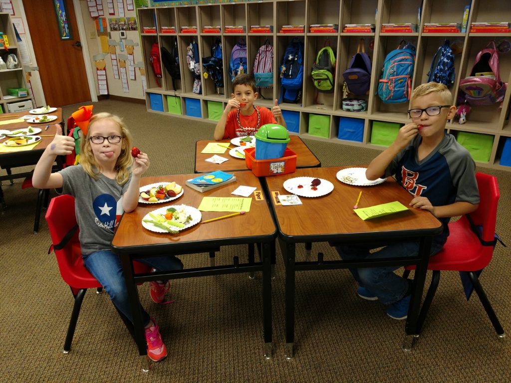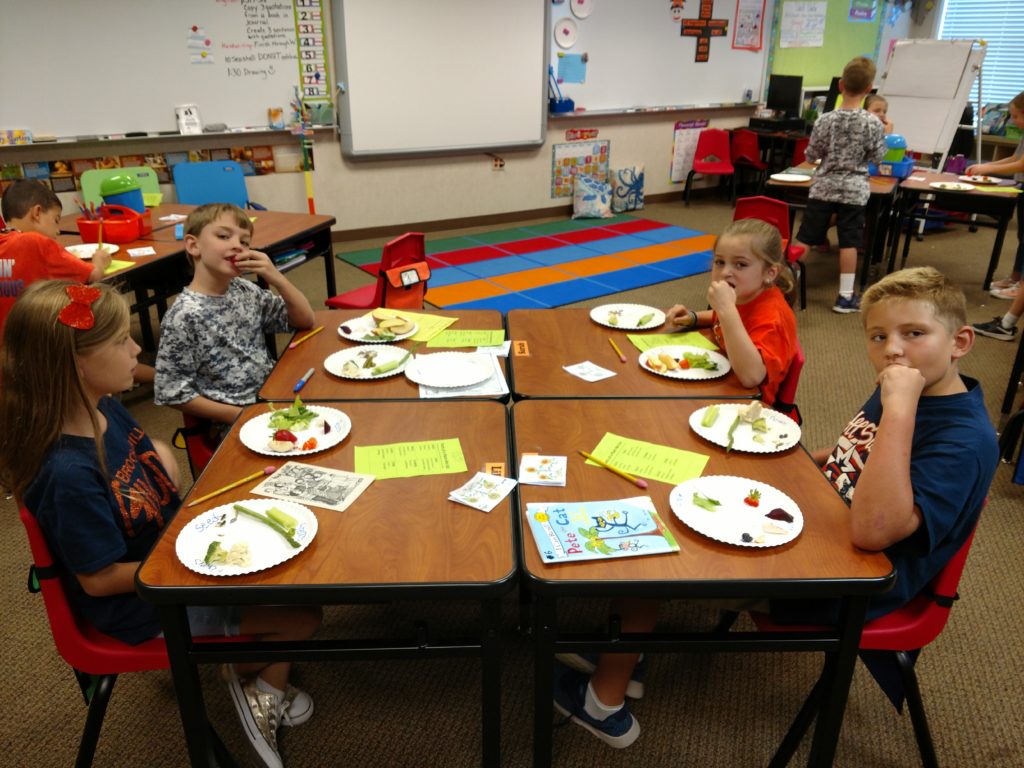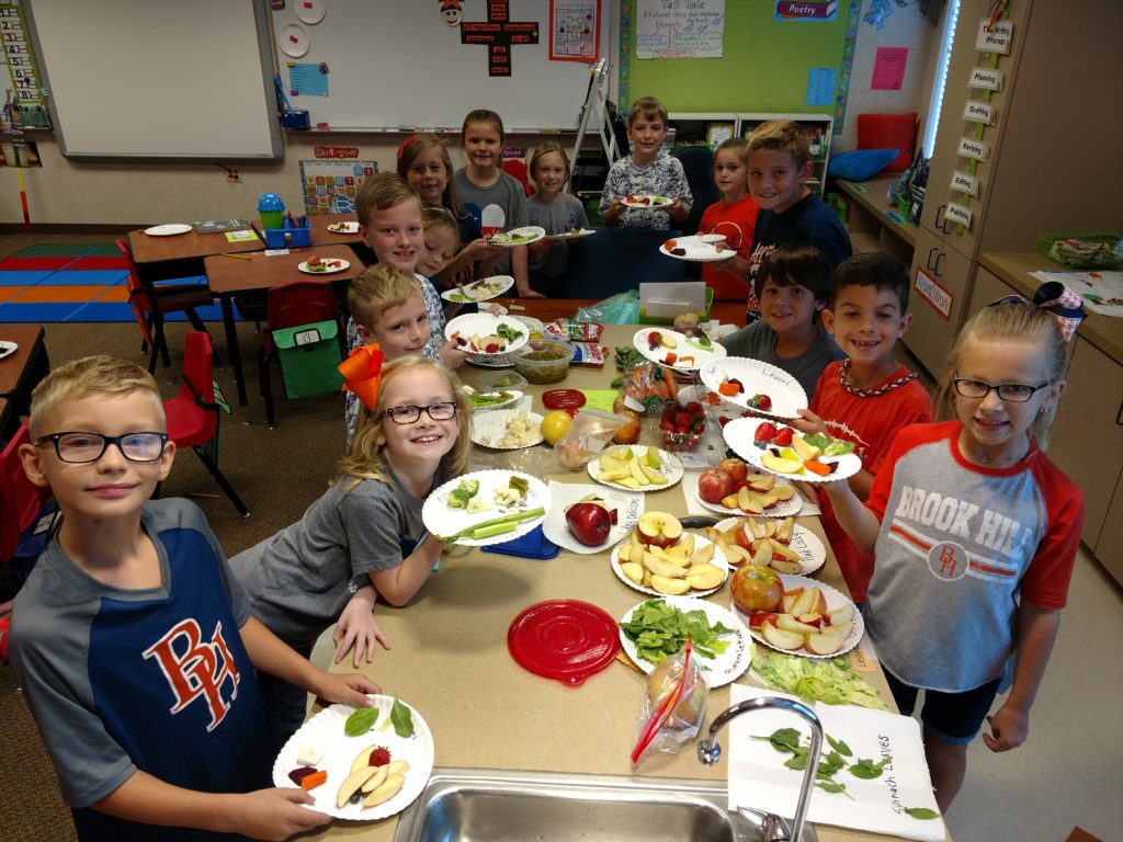 Second Grade students learned about living and non-living things in science. Each student brought a fruit or vegetable to class on Friday. The students classified each food item into the six parts of plants-flower, stem, root, seed, fruit and leaf. Then students tasted each food item and recorded whether they liked it or not. Many students found fruits and vegetables they didn’t know they liked!