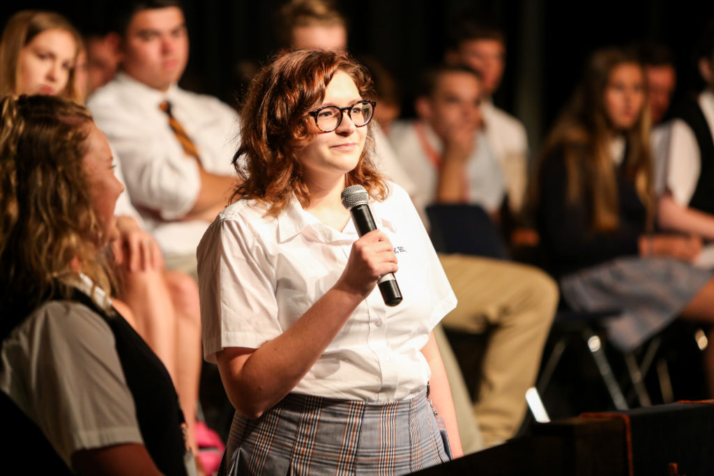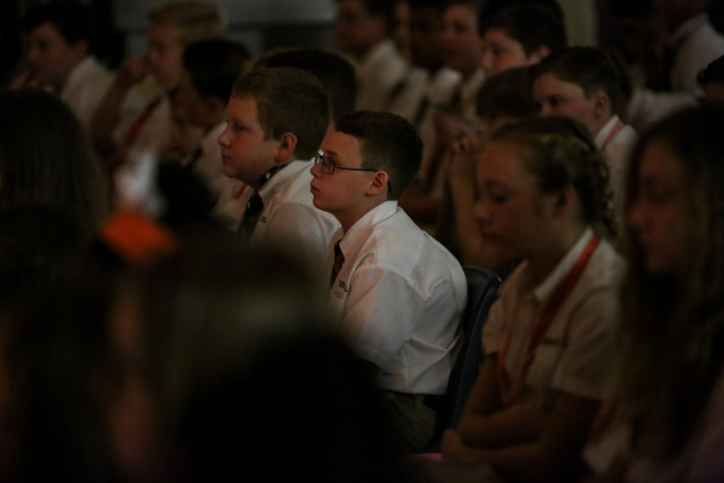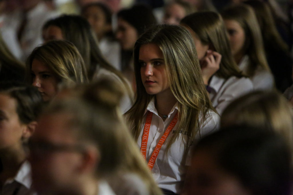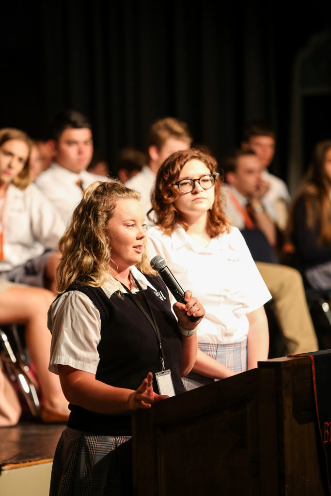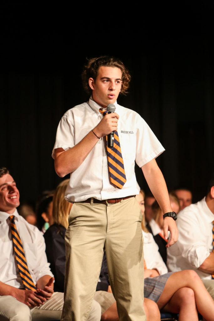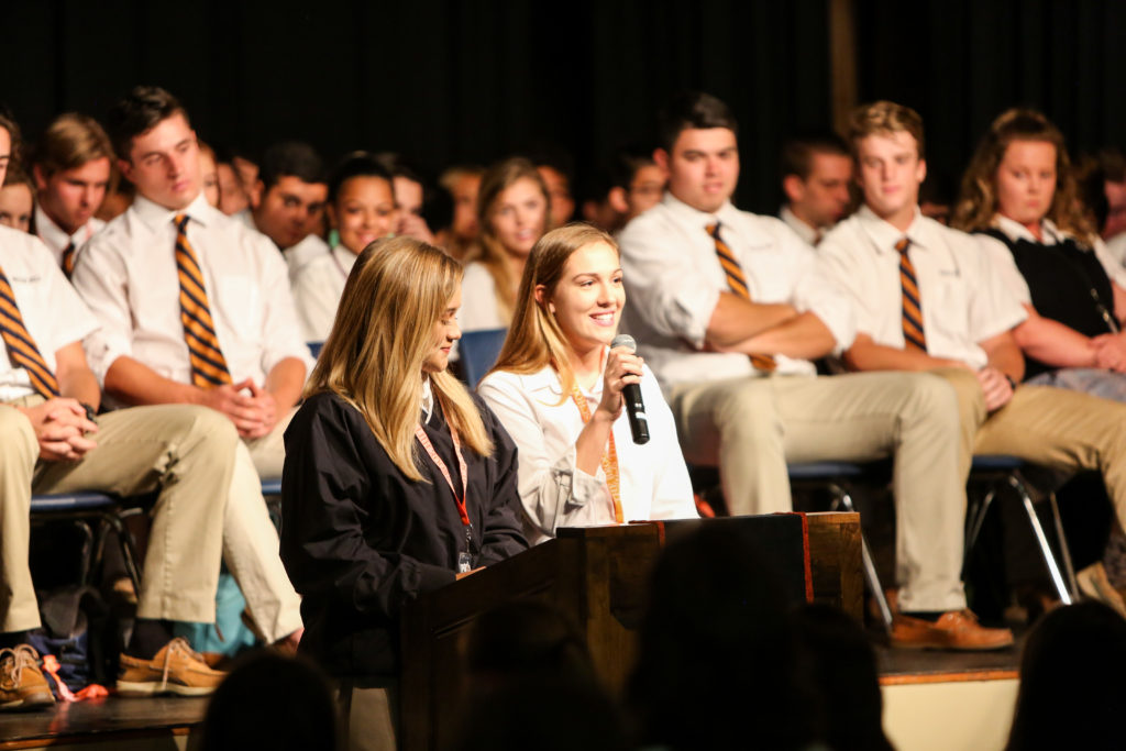 Our Class of 2018 led a combined Middle and Upper School chapel this week as many of them shared about different aspects of the Guard Charge and how they got to implement it on their senior trip last week. They also encouraged students younger than them to “Live Pure. Speak True. Right Wrong. Serve Others. Follow the King.” Coach Brasher then showed a video of the destruction of Hurricane Harvey and explained Brook Hill’s action plan begins with receiving donations for victims.