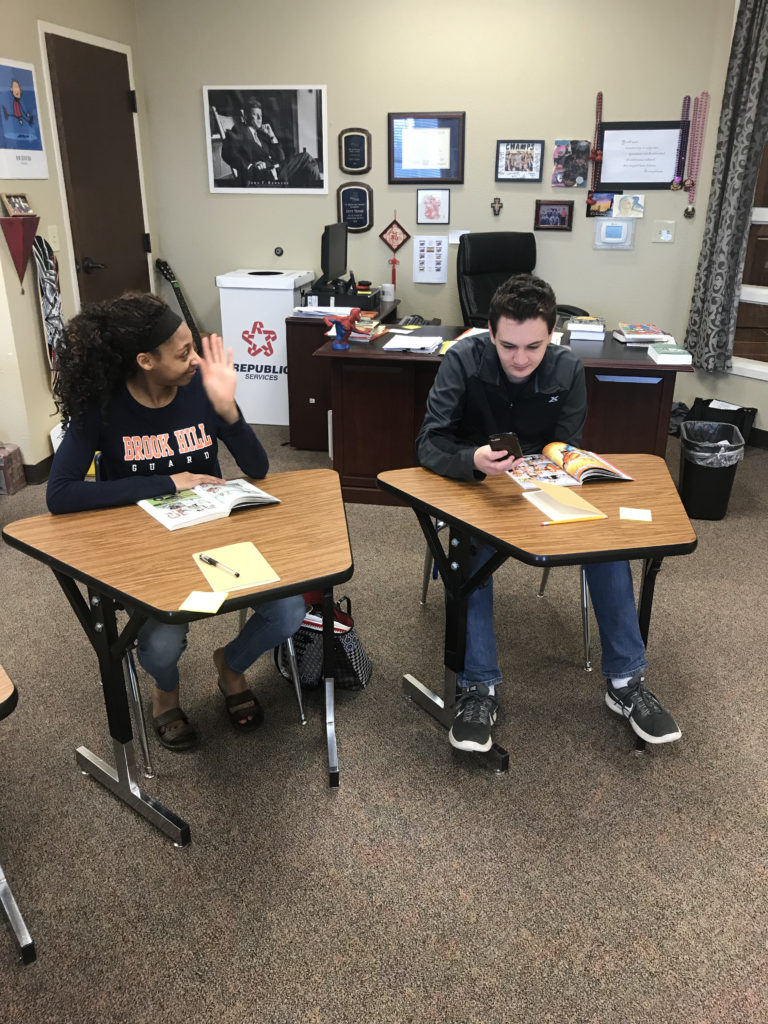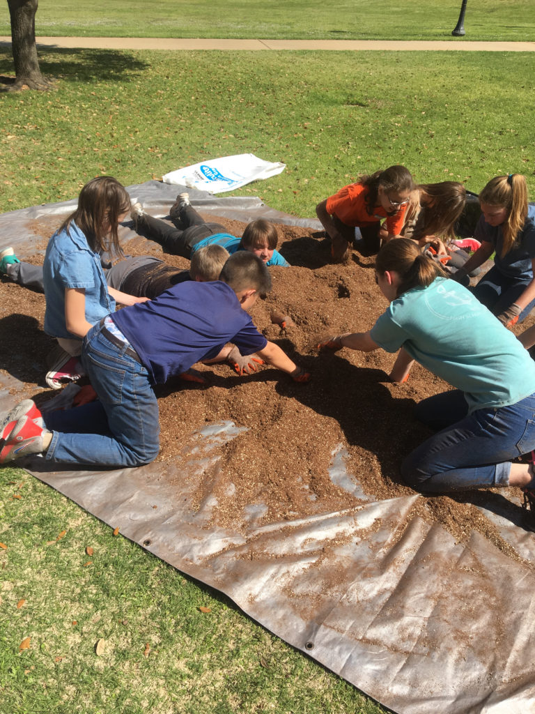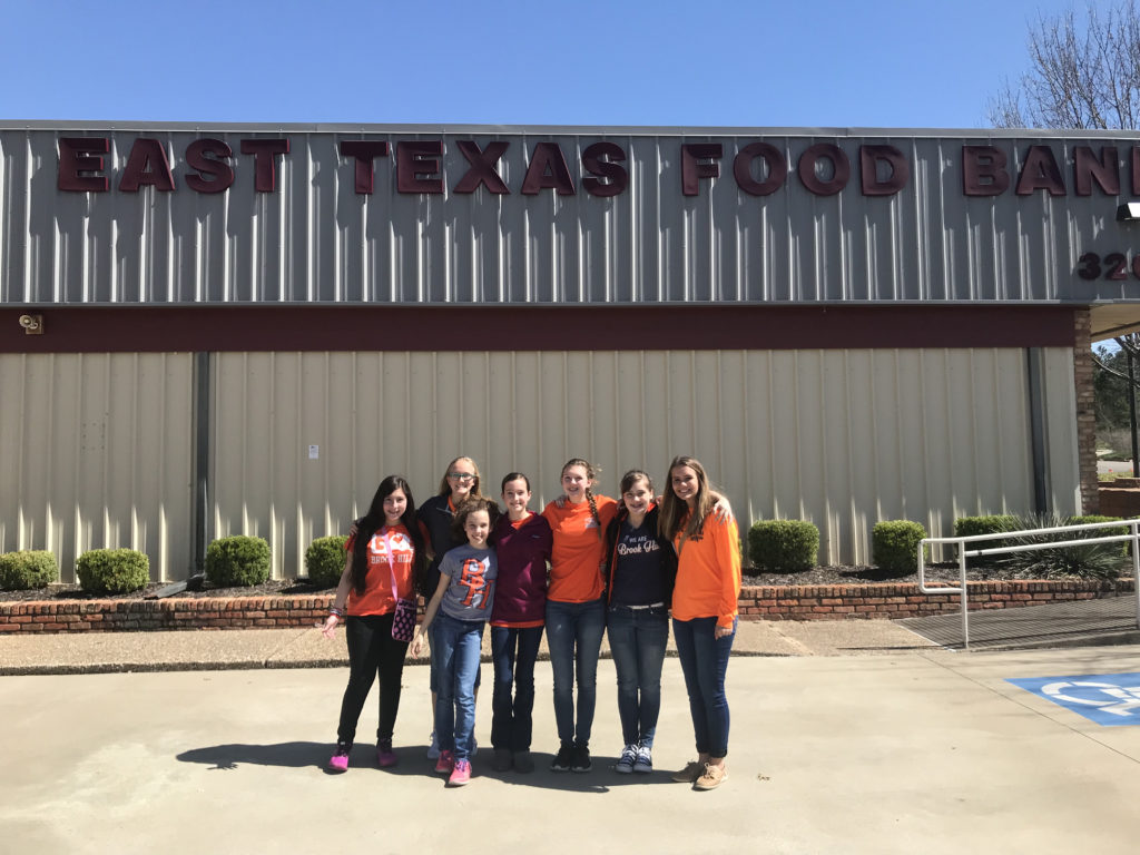 This course of both middle and upper school started with going to the Boys and Girls Club to assist with cleaning out closets and help with sorting equipment. Following their service at the Boys and Grils Club, our students went to TJ Austin Elementary where they worked in small groups tutoring elementary students in math. Next this group went to the Jesus Closet charity store where they sorrted shoes, coats, and clothing for their staff to deliver to homeless people in this area. Next, the group went to East Texas food bank to box rice and build care packages containing food for after school programs at various elementary schools. Next the group went to Pine Cove and moved tables from one camp to another as well as helped the staff clean up around the camp. They were able to hike up to the lookout in order to pick up trash and hauled off broken games. Next, the group traveled to the Hamptons retirement community to visit with residents. Several students helped residents of the memory care unit plant seeds while others did aerobics with residents. The group finished up on Friday with service projects on campus.