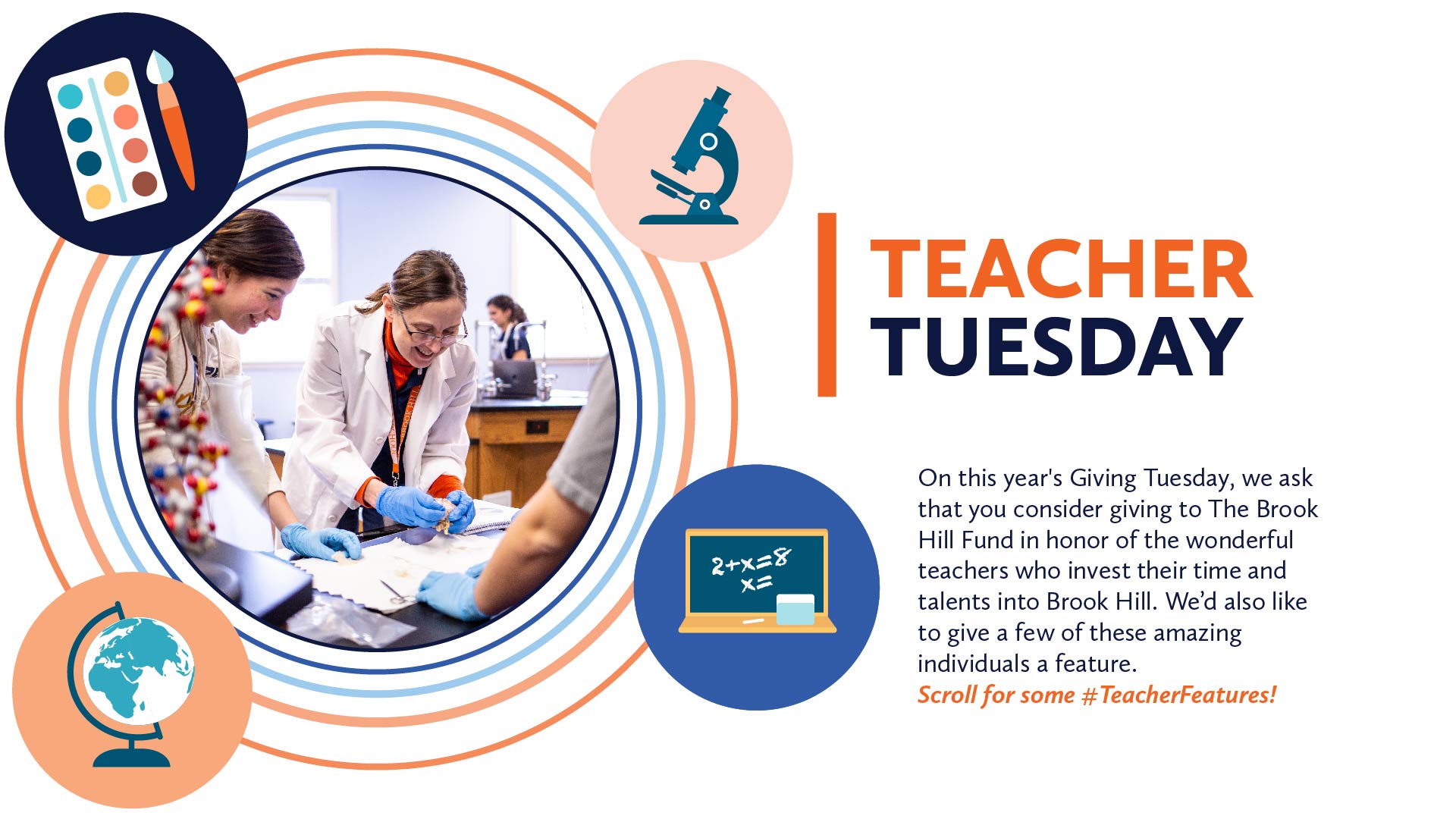 Giving Tuesday 2022 #TeacherTuesday Honor the teachers who have impacted your life this holiday season! All gifts directly support the faculty fund. Give today at brookhill.org/donate!