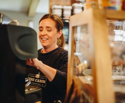 Our Cabin Coffee House is open Monday – Friday from 7:30 am – 5 pm and offers a full coffee bar, smoothies, breakfast burritos, and other snacks!