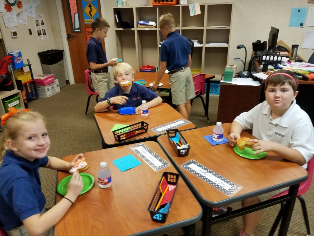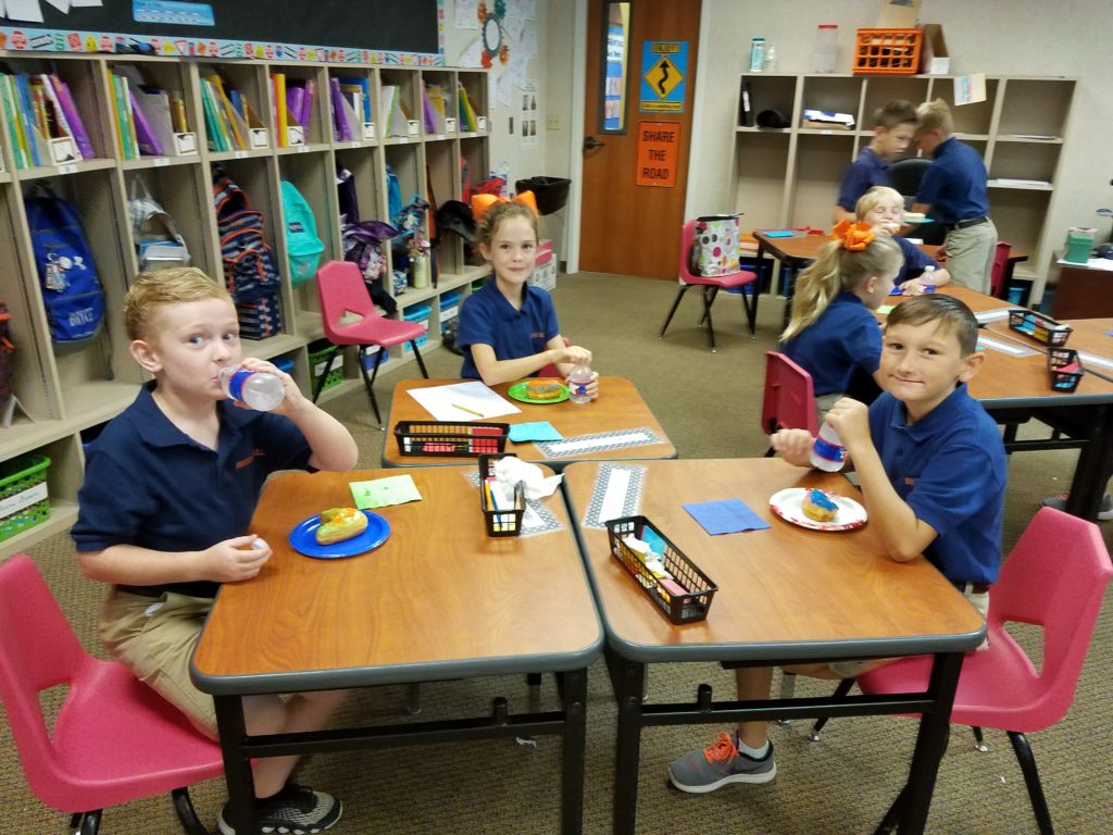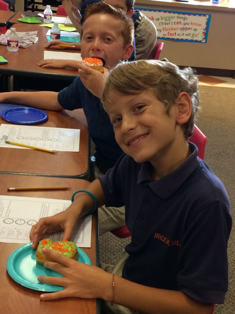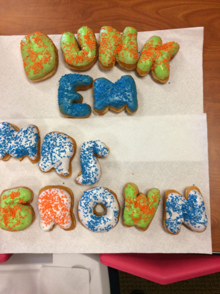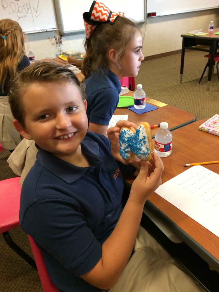 Third grade celebrated today with DONUTS for having a 100% contribution in the Family Participation contest. The donuts spelled Dunk ‘em Mrs. Brown, Mrs. Dahn and Mrs. Attebery. Congratulations 3rd grade for a job well done!