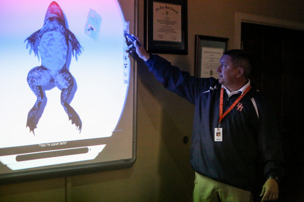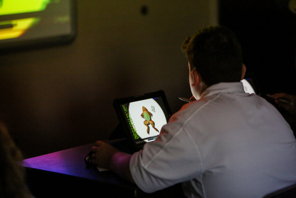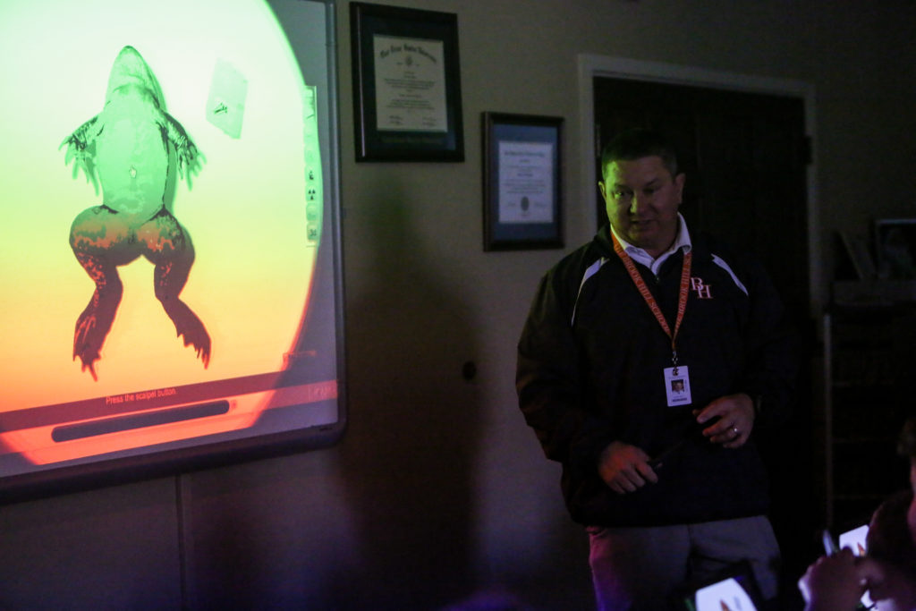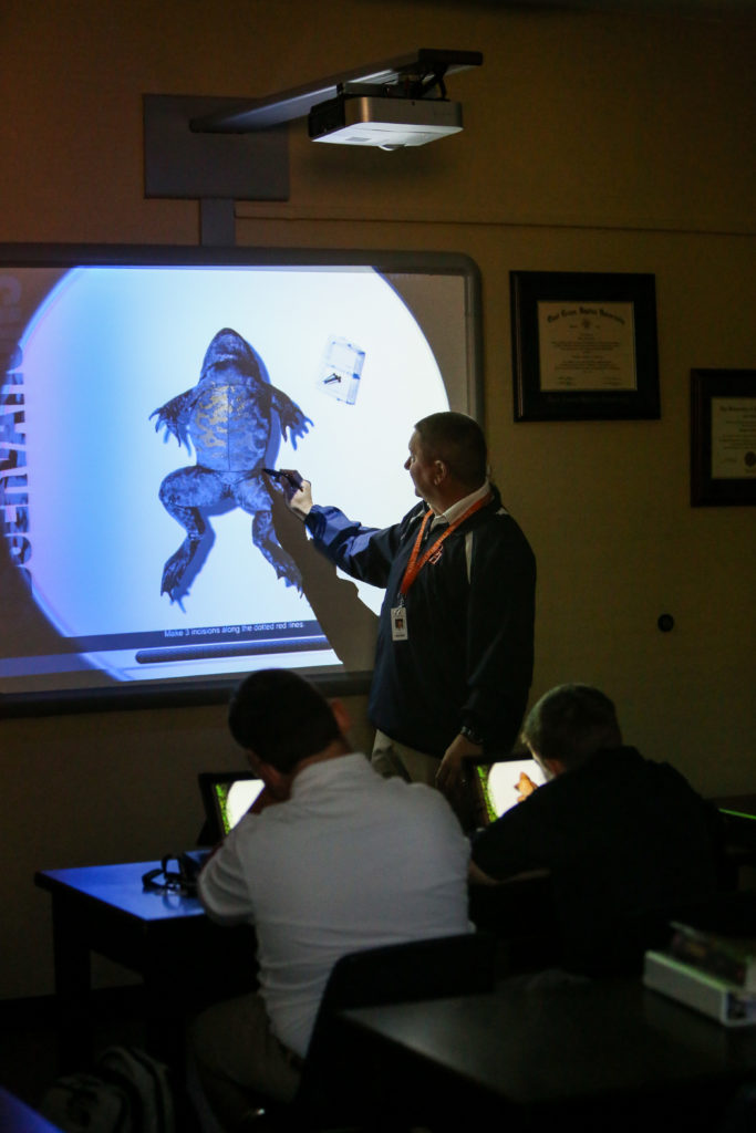 Coach Collins’s class practiced dissecting frogs via tablets today. The real frog dissection will happen next week, but this way they will be prepared for where their incisions go and what they will be examining.